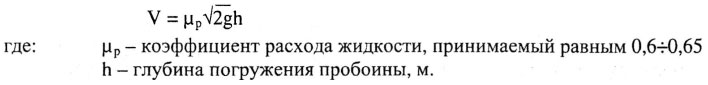 При получении судном повреждения необходимо помнить, что ведение борьбы с поступающей внутрь корпуса водой с помощью общих водоотливных средств во многих случаях практически бессмысленна. Как известно, объем воды V м/сек., поступающей через пробоину, выражается формулой: