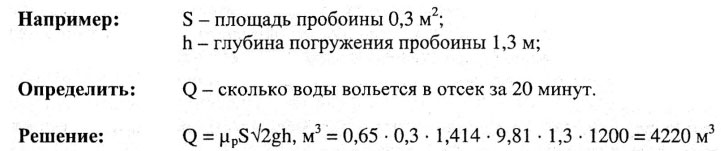 Таким образом, через пробоину в подводной части корпуса судна ежесекундно будет вливаться следующий объем воды Q: