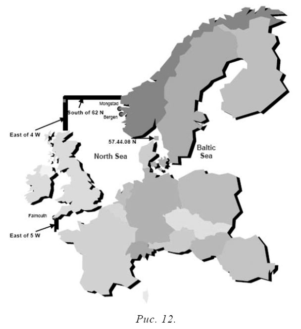Согласно современным требованиям конвенции МАРПОЛ, выделен специальный район, в котором допускается использование топлива с содержанием серы не более 1,5% (зона SECA – SOx Emission Control Area, (рис. 12).
