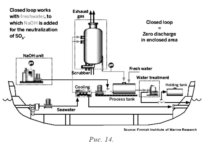 Еще одна схема установки (рис. 14) удаление серы из выхлопных газов при помощи скруббера системы Вяртсиля