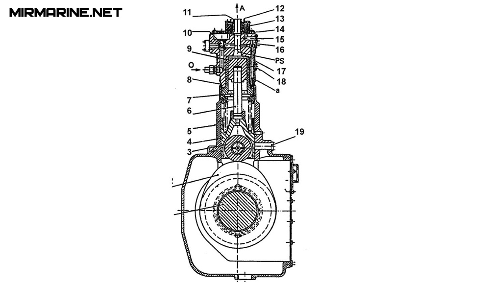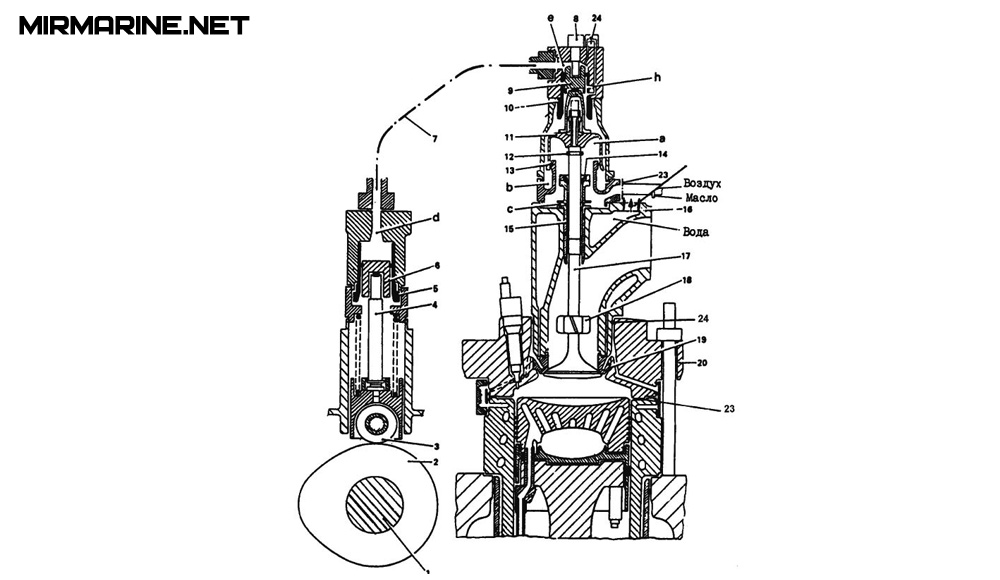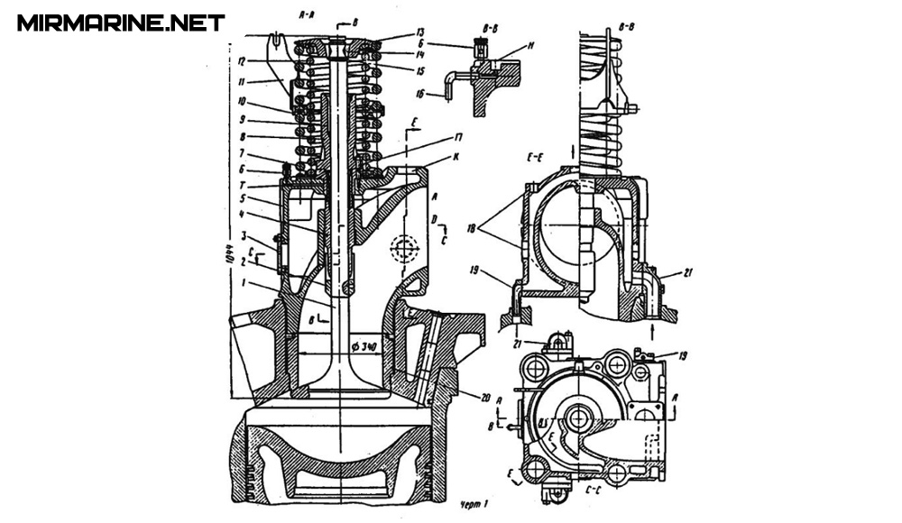Конструкция выпускного клапана дизеля K98FF с механическим приводом