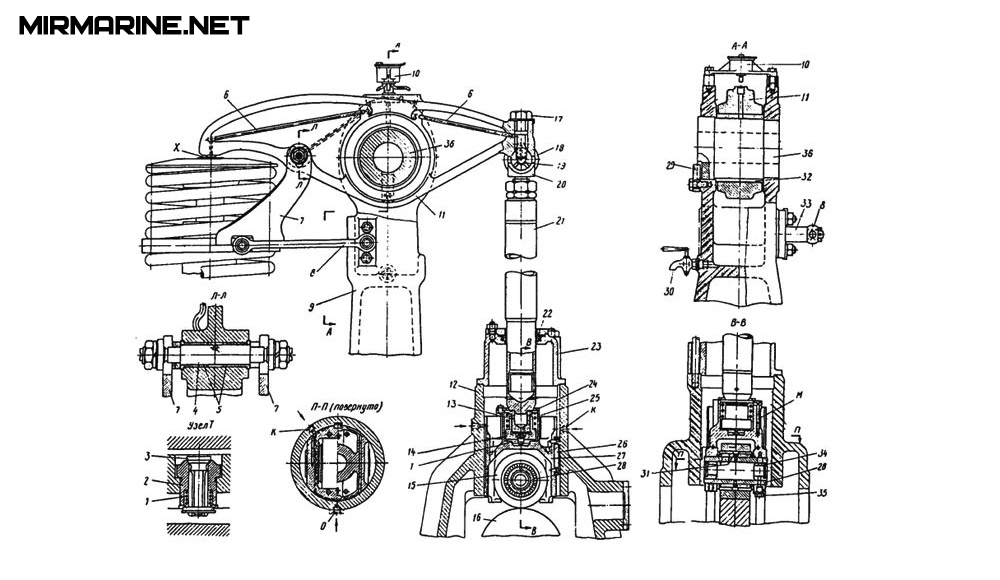 Конструкция механического привода выпускного клапана дизеля К98ГГ