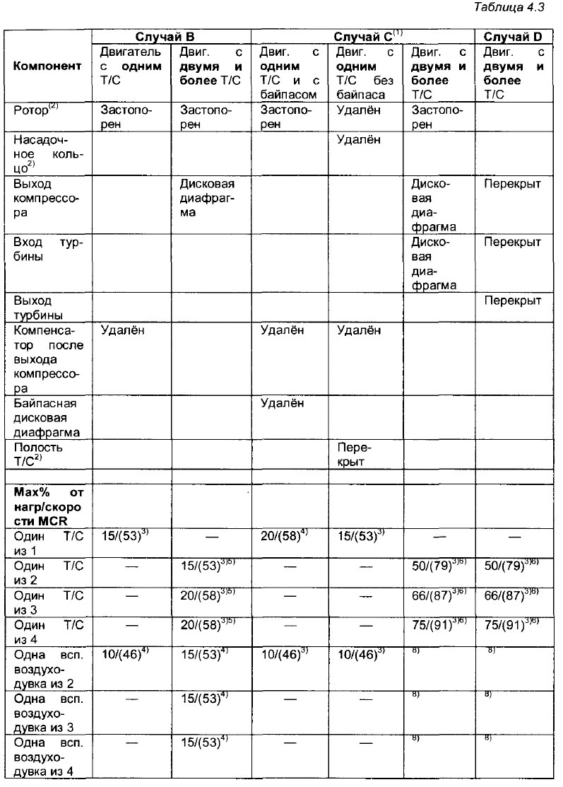Если это невозможно, то двигатель может управляться с выведенными из работы одним или более цилиндров или турбонагнетателей, но со сниженной скоростью и с учётом следующего: