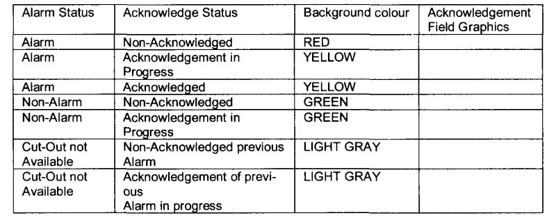Состояние сигнала может определяться также с помощью цветной подсветки Background Colour, а также в виде графической идентификации в поле квитирования Acknowledgement field на экране как показано ниже.