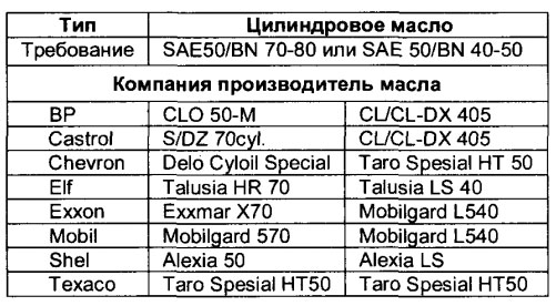 Рекомендуется применять цилиндровые масла степенью вязкости SAE 50. Во время стендовых и ходовых испытаний рекомендуется использовать цилиндровые масла с высокой моющей способностью. Использовать необходимо масла с общим базовым номером (TBN - Total base number) 70, поскольку 70 TBN даёт хороший результат. В случае высокого содержания серы в топливе необходимо использовать масло с более высоким TBN.