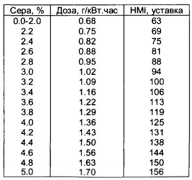 с минимальной уставкой 0,5 г/лс •час, т.е. уставка должна учитывать содержание серы в топливе 2% и ниже.