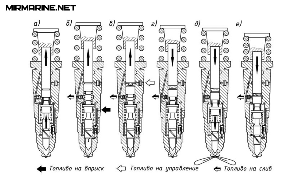 Насос-форсунки с гидравлическим приводом плунжера и электромагнитным управлением подачей топлива