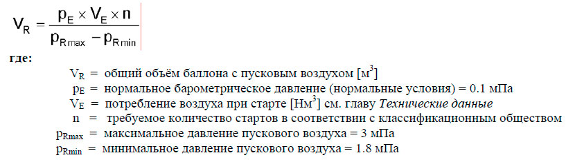 Требуемый общий объём баллона пускового воздуха может быть посчитан по формуле: