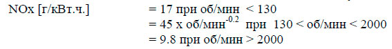 Ограничения на выброс NОx согласно Федеральным стандартам Tier2 IMO рассчитываются следующим образом: