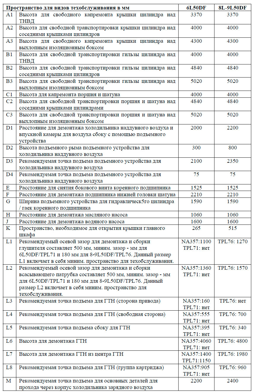 Требуемая высота машинного отделения зависит от организации пространства для подъема и транспортировки частей двигателя. Минимальная высота машинного отделения достигается, если в машинном отделении достаточное поперечное и продольное пространство, т.е. нет необходимости перемещать узлы через защитный кожух или крышки коромысла.
