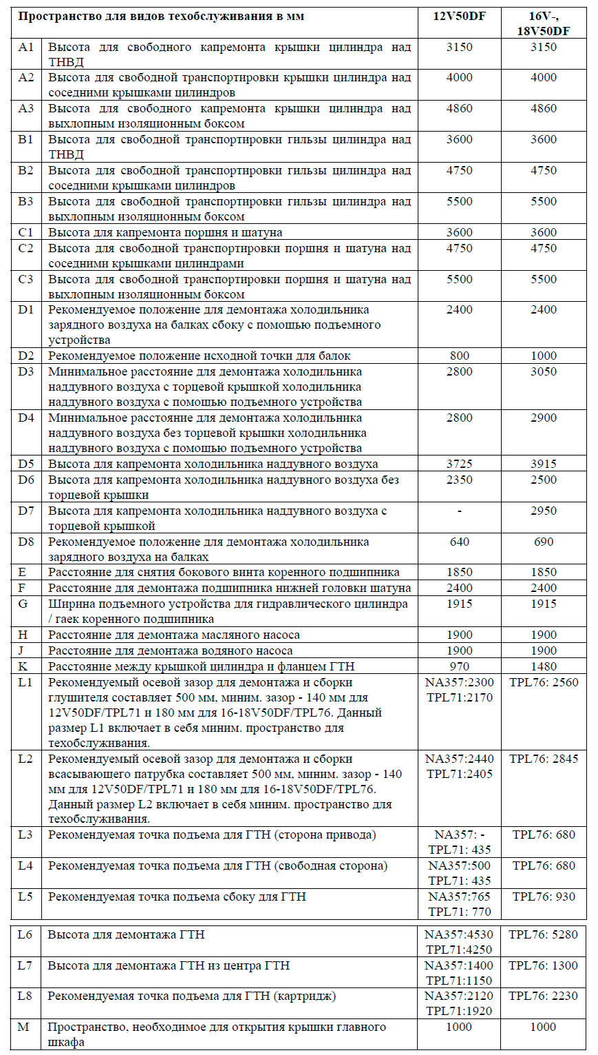 Однако даже в тех местах, где не требуется пространство для демонтажа деталей двигателя, рекомендуется зарезервировать минимум 1000 мм свободного пространства вокруг двигателя для проведения работ по обслуживанию.