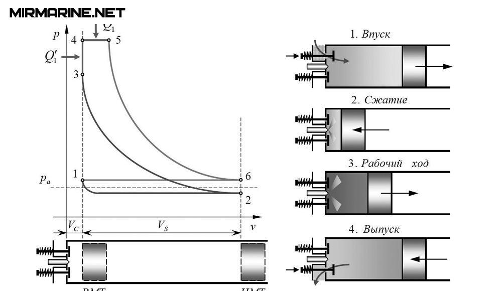 Принцип действия дизельных двигателей. Индикаторные и круговые диаграммы