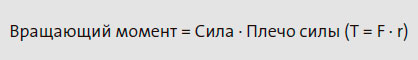 Вращающий момент (T) — это произведение силы на плечо силы. В Европе он измеряется в Ньютонах на метр (Нм).