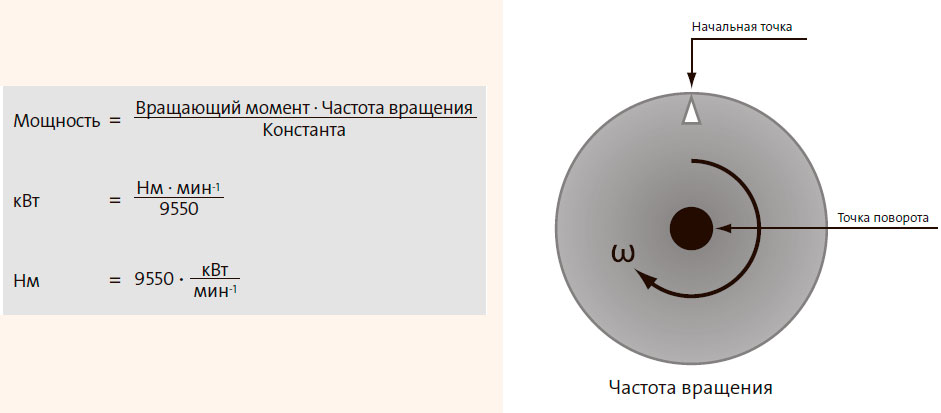 Мощность [кВт или л.с.] связывает вращающий момент с частотой вращения, чтобы определить общий объём работы, который должен быть выполнен за определённый промежуток времени.