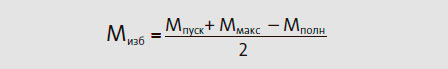 Избыточный момент равен вращающему моменту электродвигателя минус вращающий момент насоса при различных частотах вращения.