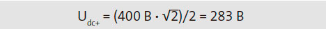 Напряжение Udc+ рассчитывается как (Земля принимается за реперную точку)
