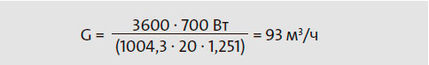 Требуется в час 93 м3 охлаждающего воздуха с разностью температур в 20 К, чтобы температура в помещении не опускалась ниже 40 °C.