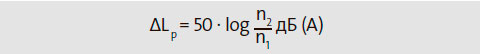 Дельта Lр — это изменение звукового давления, вызванное изменением частоты вращения с n1 на n2. Формула применима как для увеличения частоты вращения, так и её уменьшения.