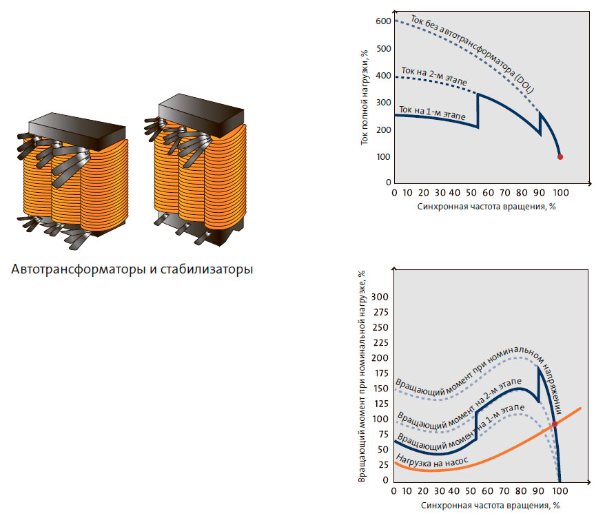 Говоря о способах пуска, которые уменьшают пусковой ток, следует отметить, что период пуска не должен быть долгим. Слишком продолжительные периоды пуска могут вызвать перегрев обмоток.