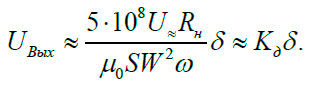 Можно вывести аналитическую зависимость UВых=f(δ), при условии, что зазор достаточно мал и потоками рассеяния можно пренебречь, и пренебречь магнитным сопротивлением железа Rмж по сравнению с магнитным сопротивлением воздушного зазора Rмв: