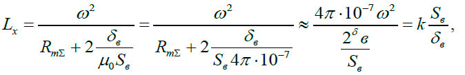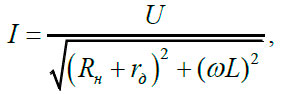 В реальных устройствах активное сопротивление цепи намного меньше индуктивного, тогда выражение сводится к виду: