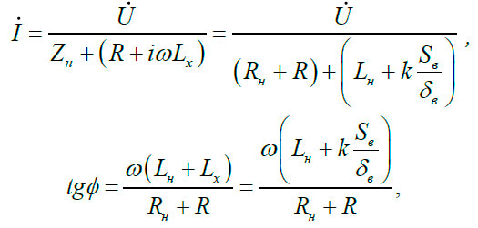 Таким образом, при изменении длины δв или площади поперечного сечения Sв – воздушного зазора будет изменяться величина тока и угол сдвига фаз между векторами напряжения тока.