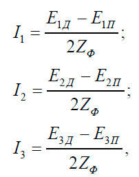 Если ротор сельсина-датчика вывести из согласованного положения и зафиксировать (затормозить), то угол рассогласования Δα = αД – αП будет отличным от нуля. В этом случае в обмотках синхронизации и линий связи потекут уравнительные токи Ii, так как ΔEi ≠0.