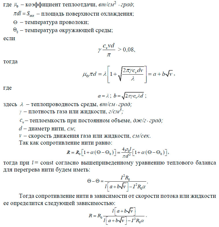 В последнее время с большим успехом в датчиках скорости применяются вместо металлических нитей (проволок) термисторы цилиндрической шаровой формы; схемы включения их остаются те же, что и в вышерассмотренных случаях.