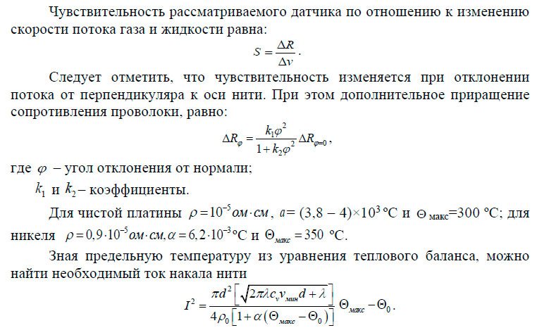 Данную группу составляют датчики, принцип действия которых основан на изменении охлаждения нагретой током проволоки или цилиндра в зависимости от скорости потока воздуха, газа или жидкости (рисунок 2.63 б).