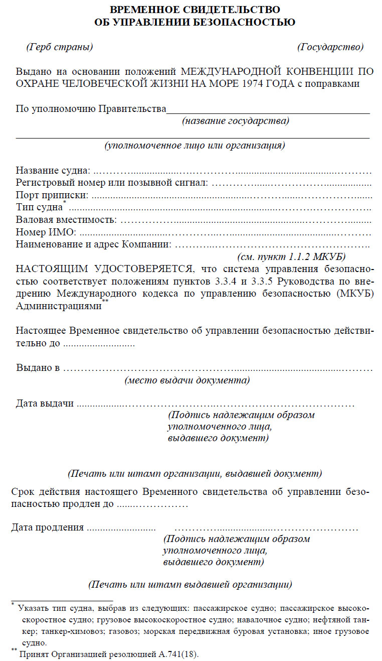 Такое Временное Свидетельство об управлении безопасностью выдается на срок, не превышающий 6 месяцев Администрацией или организацией, признанной Администрацией, или по просьбе Администрации другим Договаривающимся правительством.