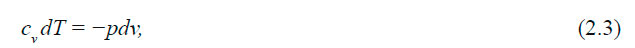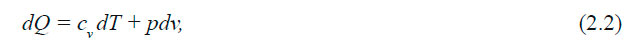 где cv — удельная теплоёмкость газа при постоянном объёме, cvdT — изменение внутренней энергии газа, pdv — работа расширения или сжатия газа.