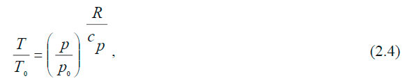 Смысл уравнения Пуассона состоит в следующем: если давление в массе сухого или ненасыщенного воздуха изменяется от р0 в начале процесса до р в конце, то температура в этой массе изменяется от Т0 в начале процесса до Т в конце (при этом значения температуры и давления связаны написанным уравнением, а показатель степени R/cp = 0,286).