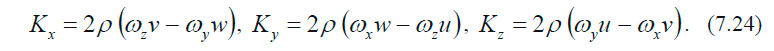 Если ось х относительной системы координат направлена на восток в Северном полушарии, ось у — на север, а ось z — вертикально вверх и проекции скорости ветра с и угловой скорости ω на х, у и z соответственно равны u, v, w и ωх , ωу, ωz, то уравнение для составляющих силы Кориолиса имеет вид: