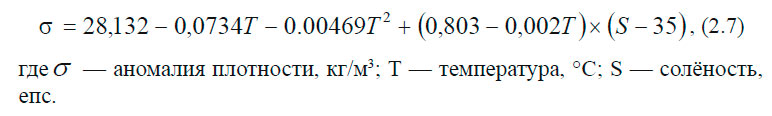 Зависимость, связывающая между собой плотность, температуру, солёность и давление, называется уравнением состояния морской воды.