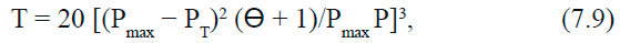 где Т — время стоянки, ч; Рmax — предельно допустимая масса груза, которая может быть переправлена по данному льду, т; Рт — масса груза, для которого устанавливается продолжительность стоянки, т; ϴ — коэффициент, учитывающий состояние поверхности льда и температуру воздуха. Его значения даны в табл. 7.19.