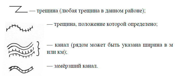СИМВОЛЫ ДЛЯ ОБОЗНАЧЕНИЯ ОТКРЫТОЙ ВОДЫ СРЕДИ ЛЬДОВ