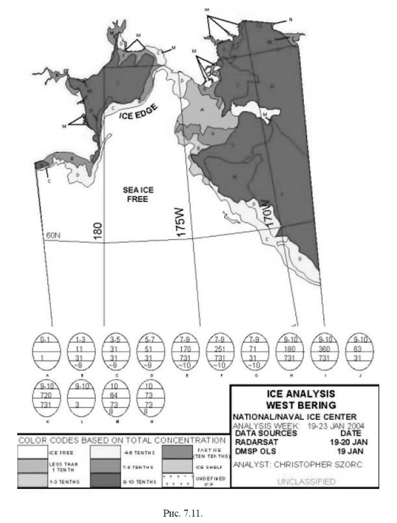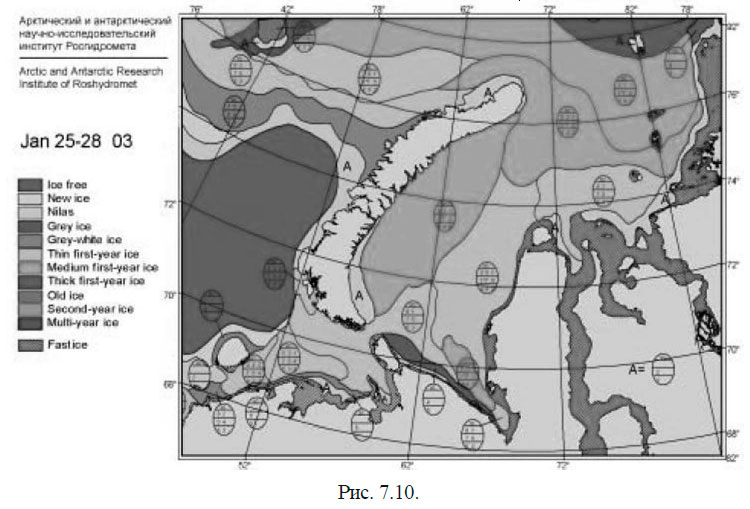 Примеры ледовых карт показаны на рис. 7.10 и 7.11.