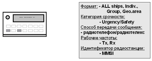 - Оповещения о бедствии в направлениях судно-берег, судно-судно.