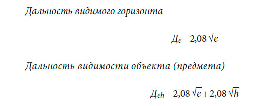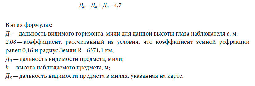 Приведение дальности видимости объекта, показанной на карте, к высоте глаза наблюдателя, отличающейся от 5 м, следует производить по формуле: