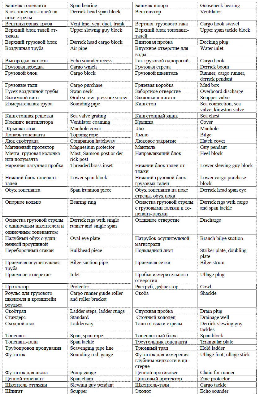 • мачты или грузовые колонны, которые служат опорой для стрел (на некоторых судах опорой может являться лобовая переборка надстройки);