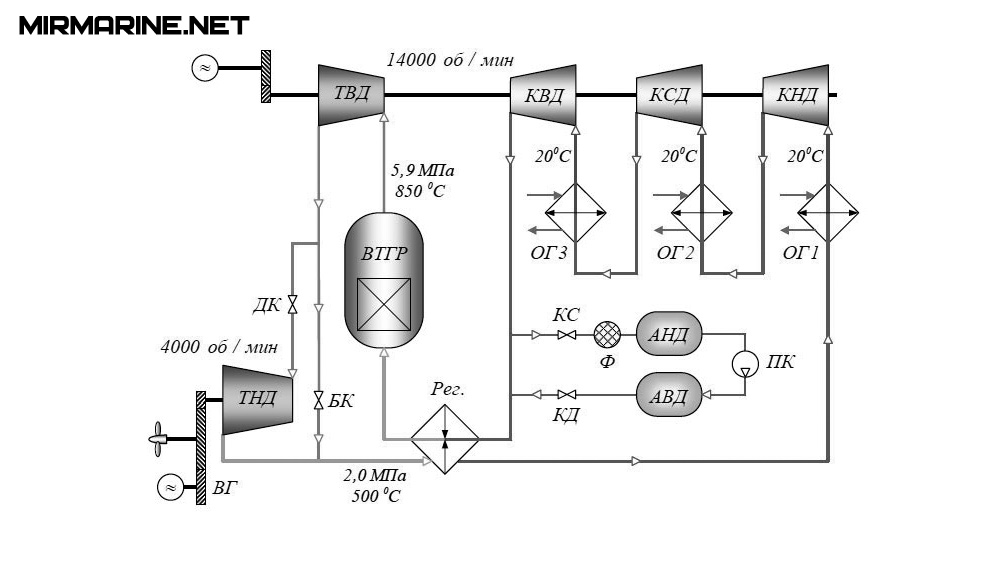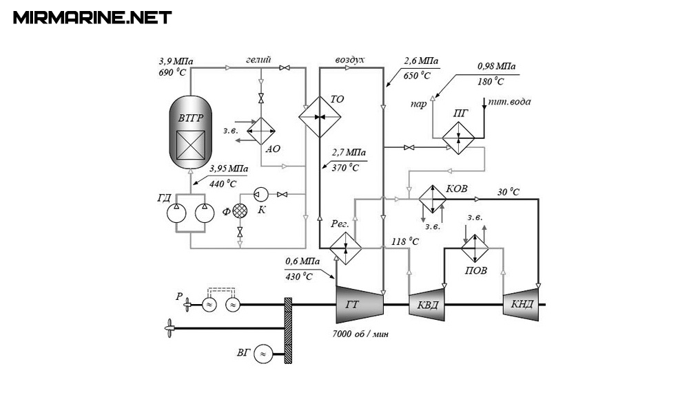 Двухконтурная ядерная газотурбинная установка с газоохлаждаемым реактором