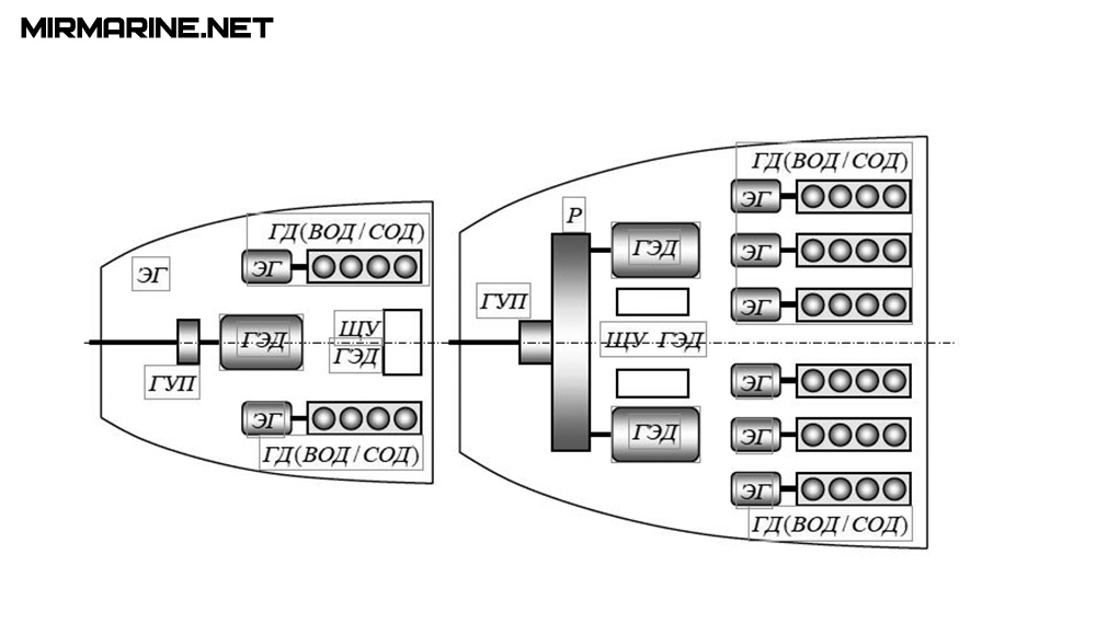 Передача мощности на гребной вал. Размещение дизельной энергетической установки на судне