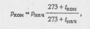 где рнач - абсолютное давление в системе в начале испытаний, МПа; кон - температура наружного воздуха в конце испытаний, °С; tнач -температура наружного воздуха в начале испытаний, °С.