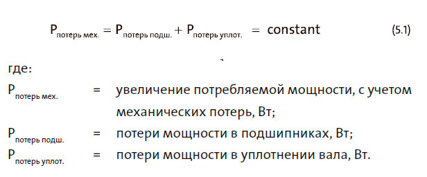 Следующая формула служит для оценки увеличения потребляемой мощности, с учетом потерь в подшипниках и уплотнении вала:
