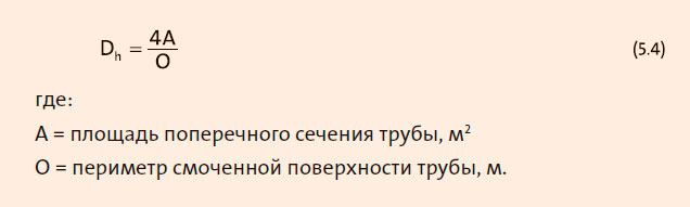 Уравнение (5.4) применяется в общем случае для произвольной формы поперечного сечения. Если труба имеет круговое поперечное сечение, гидравлический диаметр равен диаметру трубы. Труба с круговым поперечным сечением имеет наименьшую возможную площадь внутренней поверхности для данной площади поперечного сечения, поэтому она обладает наименьшим сопротивлением потоку.