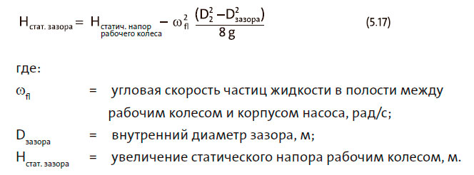 Далее приведен пример расчета протечек между входом в рабочее колесо и корпусом насоса. Сначала рассчитаем перепад напора на зазоре, создаваемый рабочим колесом. Перепад напора на зазоре определяется статическим напором перед рабочим колесом и поведением потока в полости между рабочим колесом и корпусом насоса: