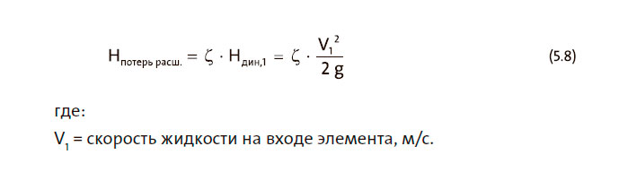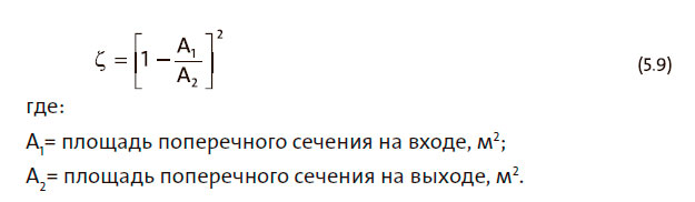 Потери при расширении поперечного сечения являются функцией скоростного напора на входе элемента.