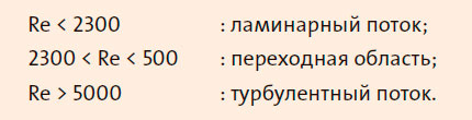 Число Рейнольдса — это безразмерное число, выражающее отношение между силами инерции и трения в жидкости, поэтому оно описывает степень турбулентности потока. Для потока в трубах справедливы следующие ориентиры: