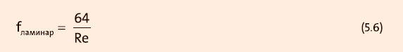 На рисунке 5.6 изображена диаграмма Муди, показывающая зависимость коэффициента гидродинамического трения f от числа Рейнольдса и степени шероховатости поверхности для ламинарного и турбулентного потоков.