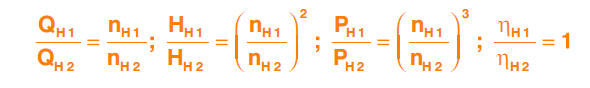 Следующие уравнения показывают влияние изменения скоростей центробежного насоса на его параметры: